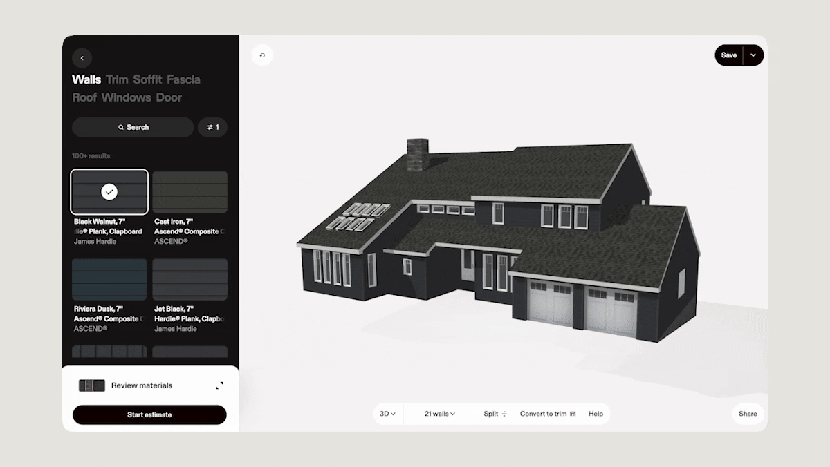 This is where Hover does all the heavy lifting. Start with Hover’s property measurements, then design and choose materials, and scope the project from every angle. With design, measurements, and estimates together on one screen, you can work through a project from picture to proposal without changing tools.