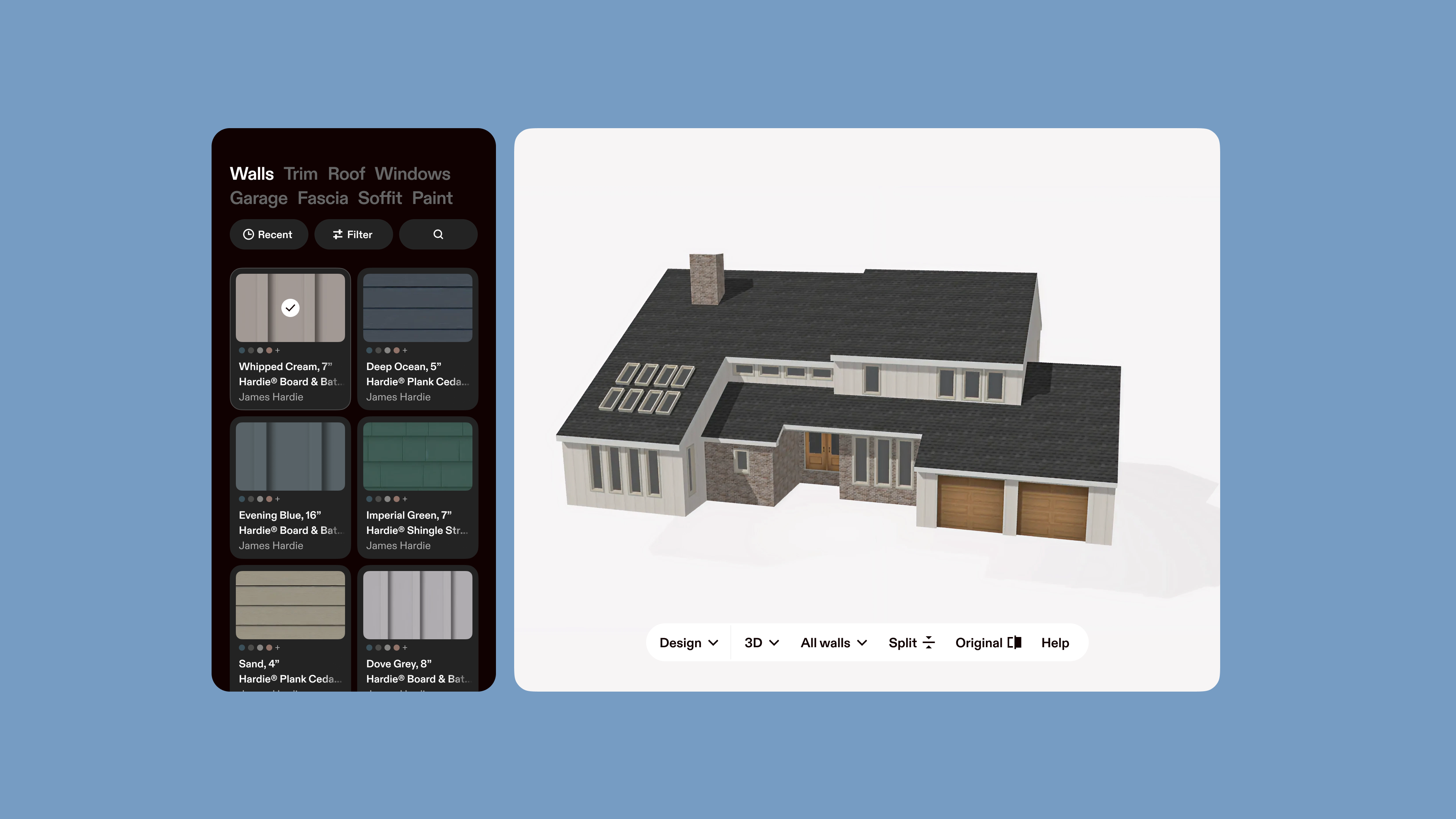 This is where Hover does all the heavy lifting. Start with Hover’s property measurements, then design and choose materials, and scope the project from every angle. With design, measurements, and estimates together on one screen, you can work through a project from picture to proposal without changing tools.